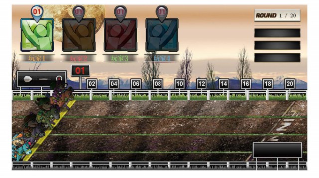 投中自己的馬所在的分區(qū)來讓馬前進, 投中一倍跑一部, 投中兩倍跑兩步, 以此類推, 若有玩家跑完20個分區(qū)便獲勝, 若無則跑在最前面者獲勝。